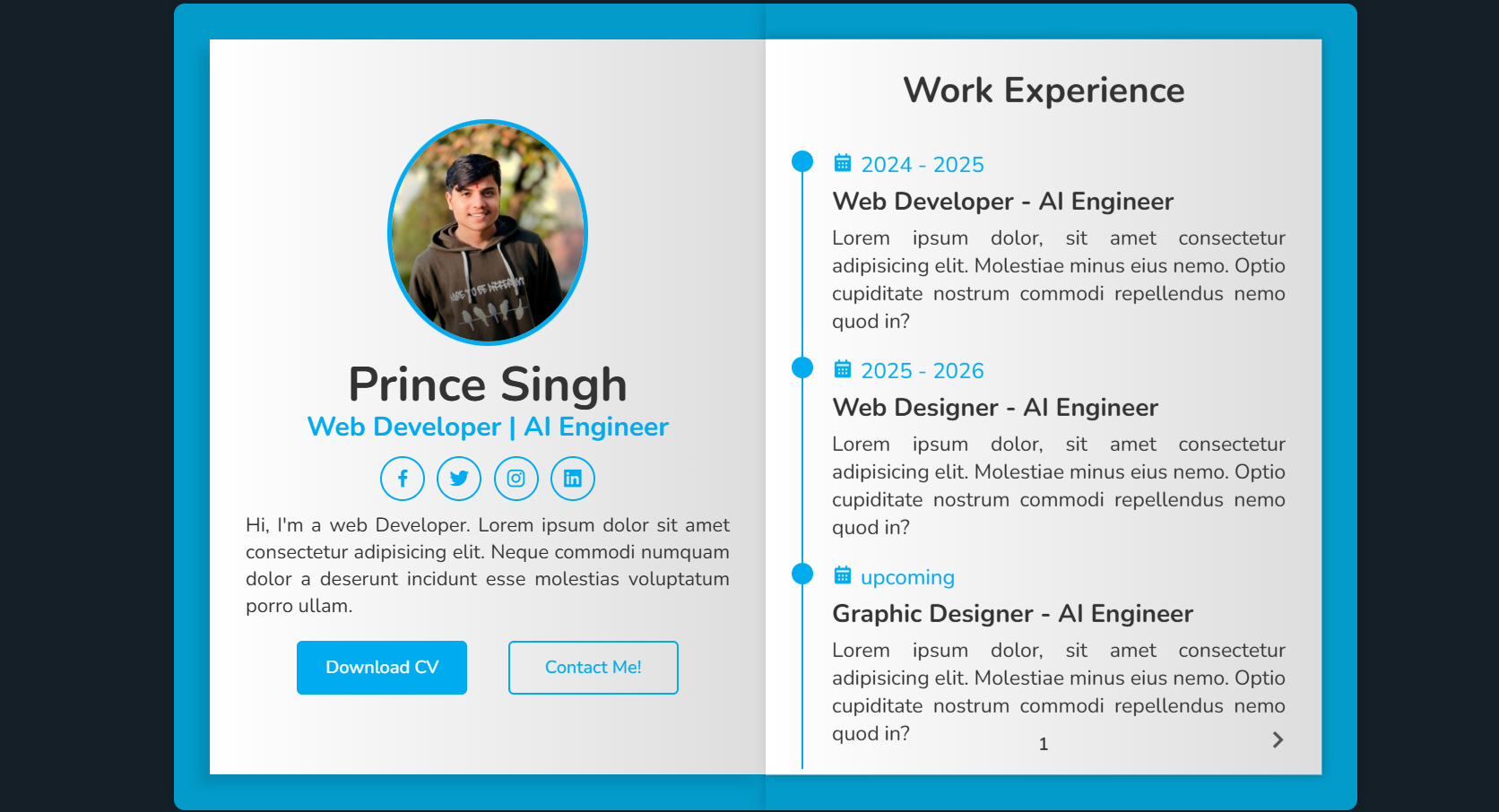 A modern interactive 3D-book portfolio with smooth page-flip animations and creative UI design. This project demonstrates advanced CSS 3D transforms and JavaScript event handling to create a unique portfolio experience.